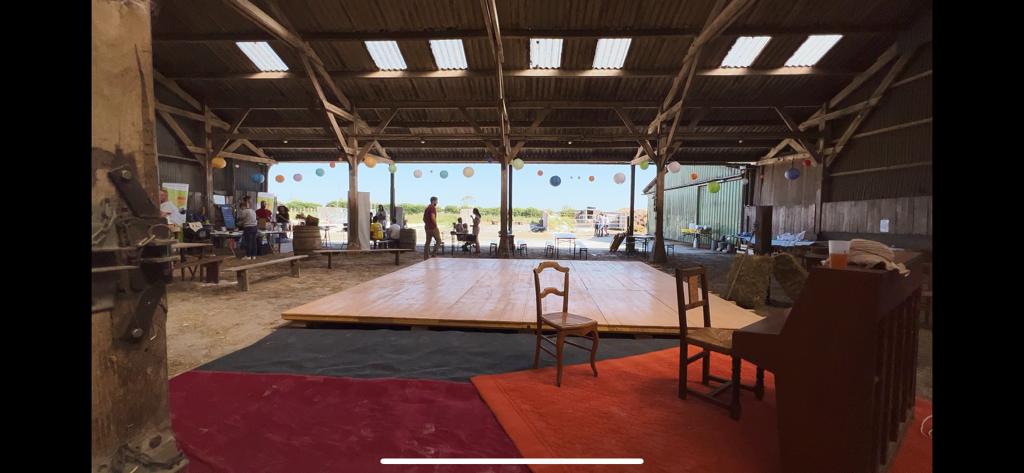 A la belle saison, l’étable des vaches laisse place à un grand espace d’accueil : venez danser pour un bal sur le parquet voyageur, écouter un concert ou regarder une pièce de théâtre confortablement assis sur les ballots de paille aménagés pour l’occasion,…