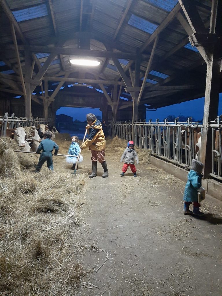 Le travail à la ferme est un travail de tous les jours, nous trayons les vaches matin et soir 7 jours sur 7 toute l’année. Nous les trayons et les nourrissons : l’été en leur préparant l’accès au pâturage, l’hiver en leur distribuant du foin à l’intérieur.