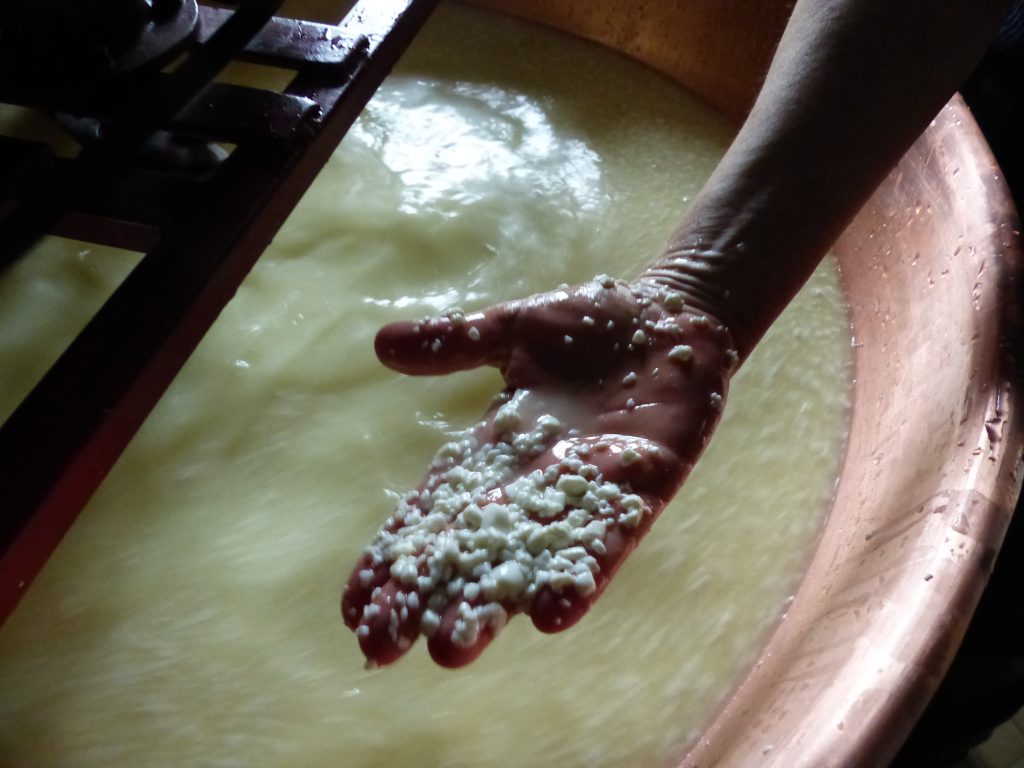 Le lait, à partir des ferments indigènes de la ferme, avec la chaleur, la présure, la patience et nos soins, deviendra raclette, tomme et autres délicieux fromages.