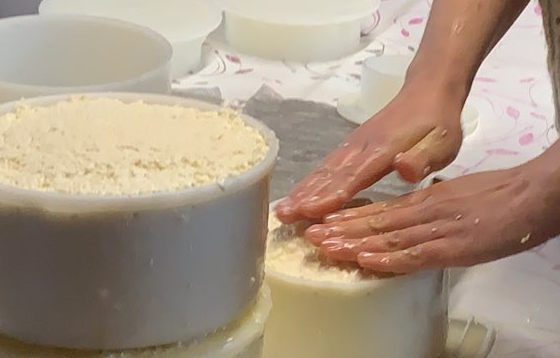Nous avons choisi de développer une gamme de fromages à pâte pressée non cuite : le réchauffage du caillé en cuve ne dépassera pas les 40 degrés. Puis les fromages seront mis sous presse avant de prendre place en cave.